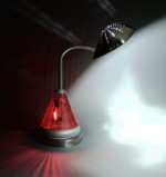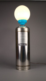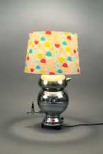 This funky accent light was created using an upcycled 1940s vintage Oster Airjet hair dryer. The warm red glow coming from the dryer mouth is provided by an LED edison-style bulb. The original Off-On switch is used to add the final touch.